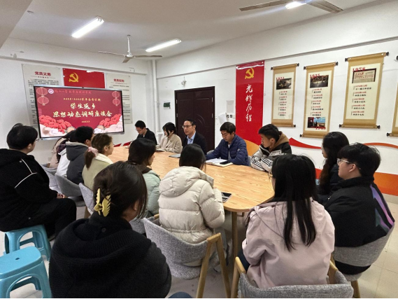 党委副书记蓝荣聪、团委副书记沈成平、辅导员许佳琦与本硕博各班代表齐聚一堂,围绕寒假见闻、个人思考与新学期规划等内容深入交流。座谈会由辅导员许佳琦主持。
