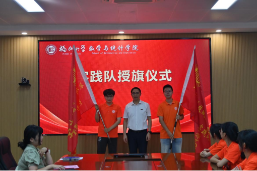紧接着,蓝荣聪副书记为实践队授旗。这一授旗仪式,激励着数统实践队员们在本次暑期“三下乡”社会实践活动中传承和发扬数统学子的优良作风与优秀精神,在实践中砥砺前行、茁壮成长。